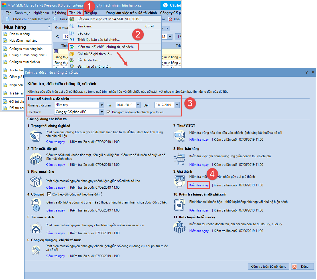 Tiện ích\Kiểm tra, đối chiếu chứng từ, sổ sách