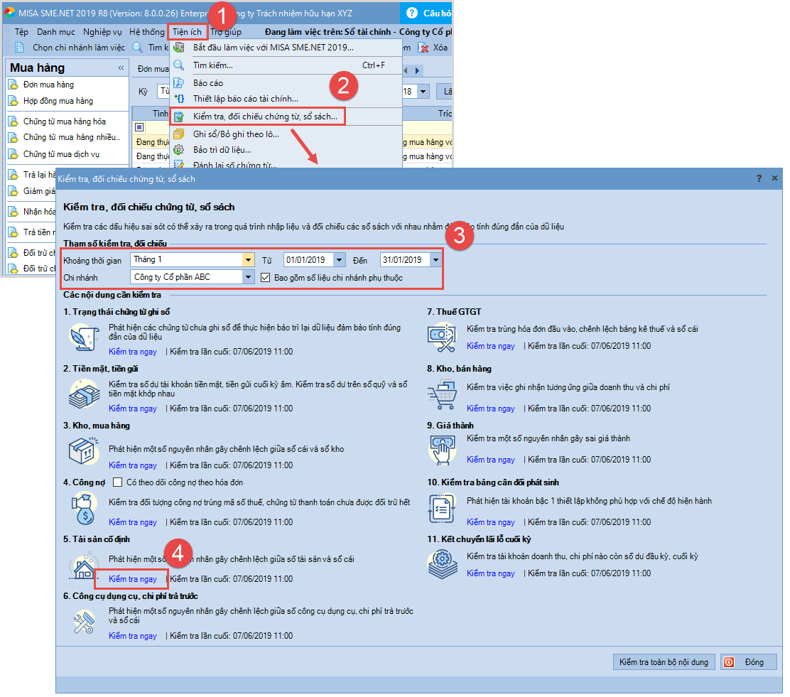 Tiện ích\Kiểm tra, đối chiếu chứng từ, sổ sách