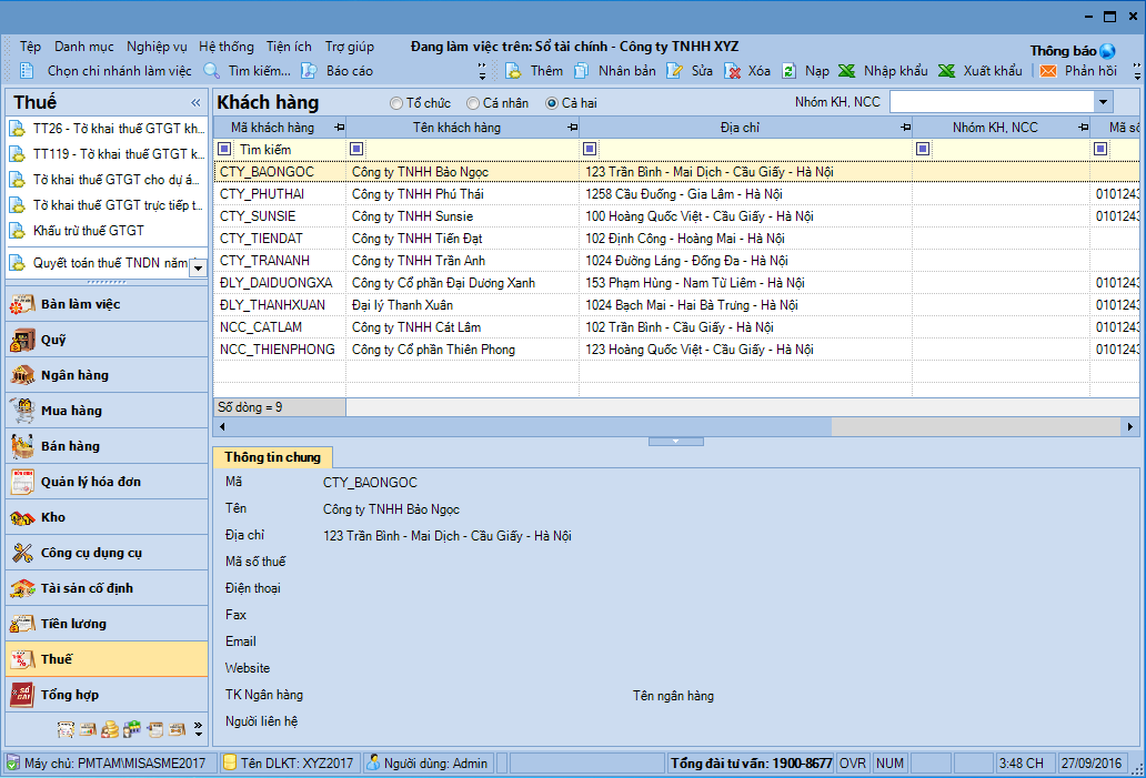 Danh mục Khách hàng quản lý thông tin về các khách hàng của doanh nghiệp, phục vụ cho việc lập và hạch toán các chứng từ kế toán liên quan đến hoạt động bán hàng.