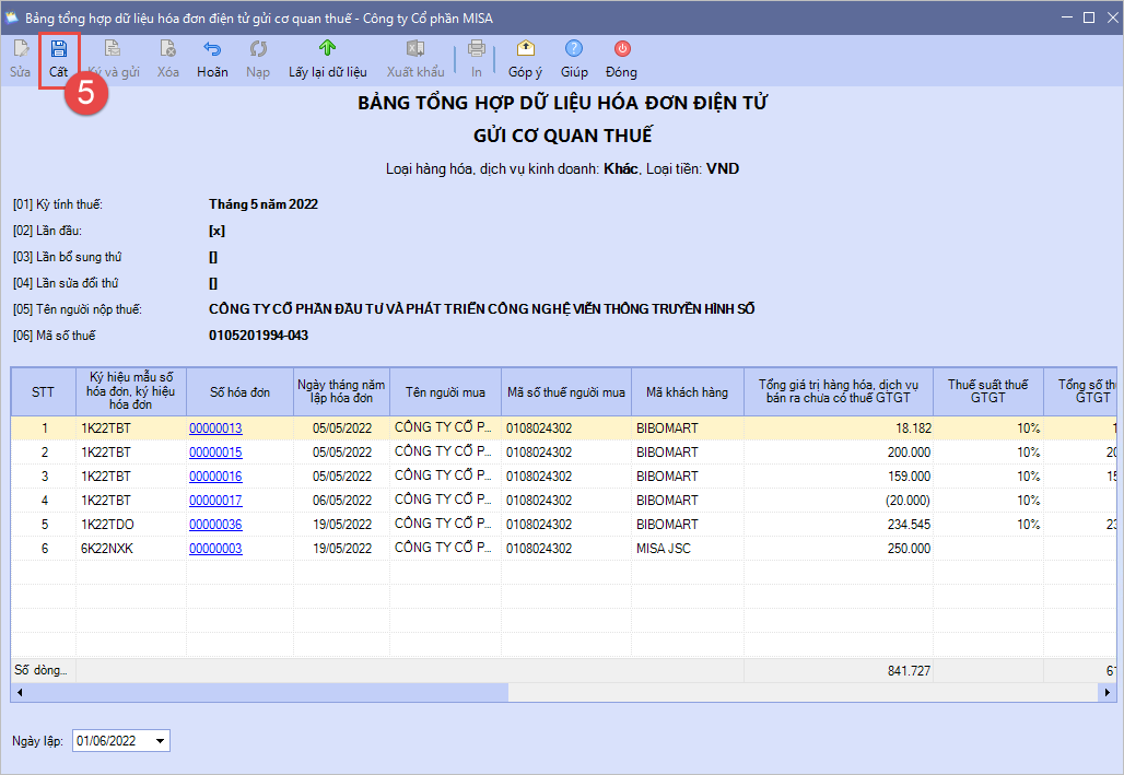 Bước 3: Kiểm tra lại dữ liệu bảng tổng hợp. Nhấn Cất.