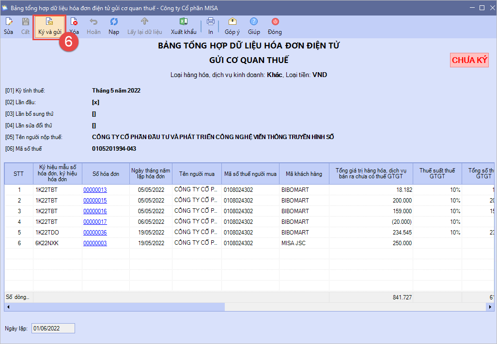 - Chương trình chưa đáp ứng ký bảng tổng hợp dữ liệu hóa đơn điện tử thông qua máy chủ (Hình thức ký số trực tiếp thông qua USB Token).