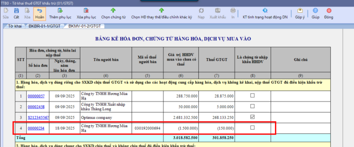 Kê khai vào Tờ khai thuế GTGT của kỳ nhận được hóa đơn điều chỉnh: Kê khai số âm hoặc trừ đi số tiền hàng, tiền thuế của Hóa đơn điều chỉnh giảm vào các chỉ tiêu [23] [24] [25].