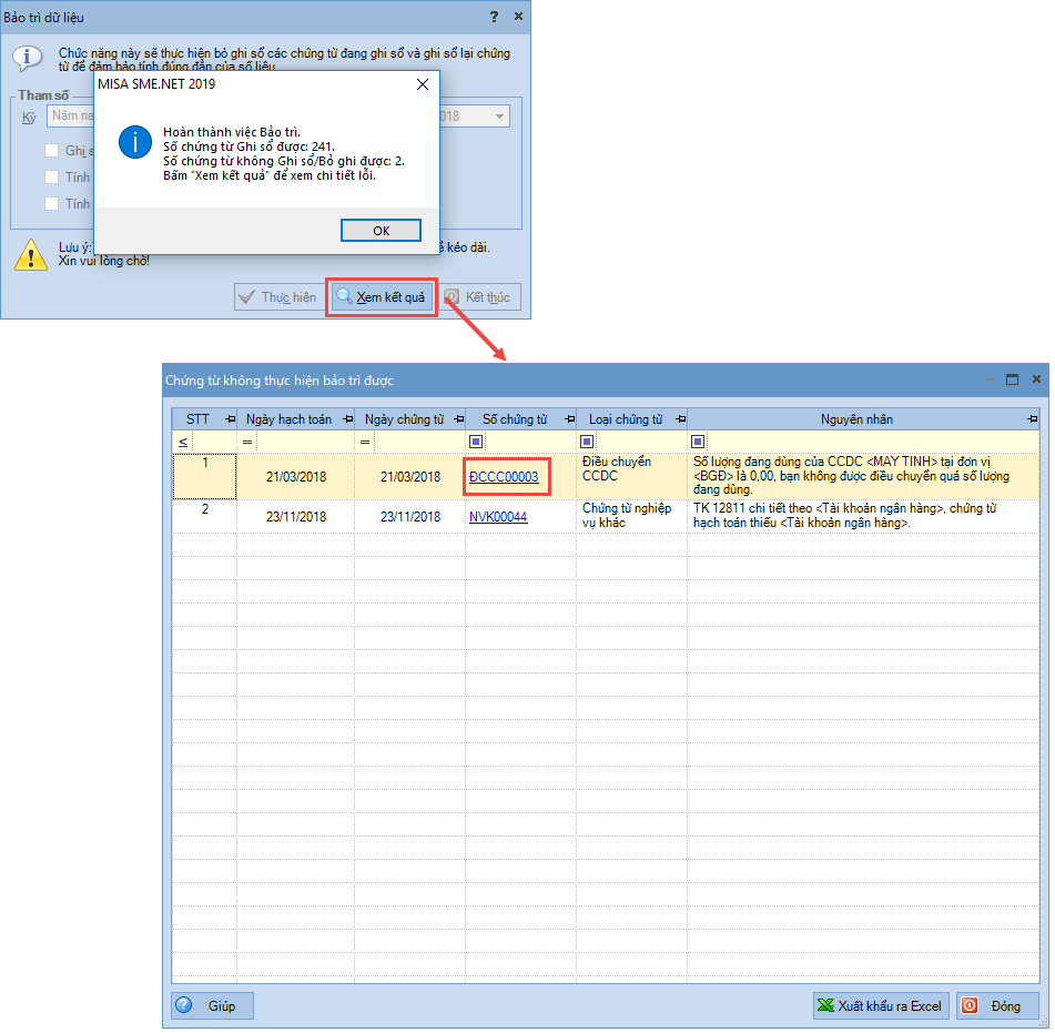 - Kiểm tra trạng thái chứng từ ghi sổ