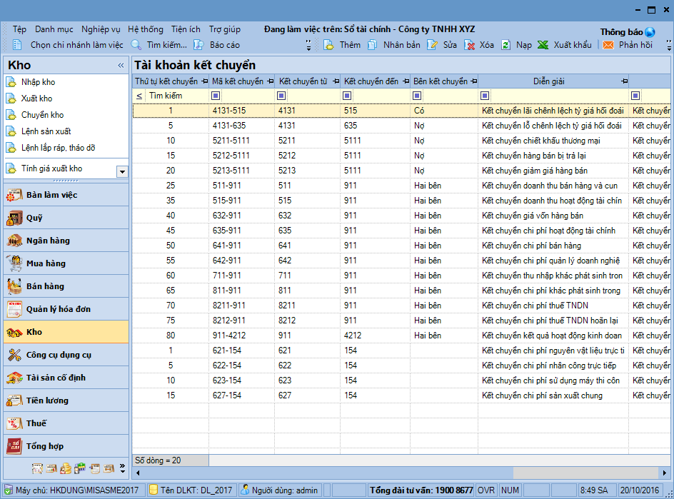 - Xuất khẩu danh sách tài khoản kết chuyển