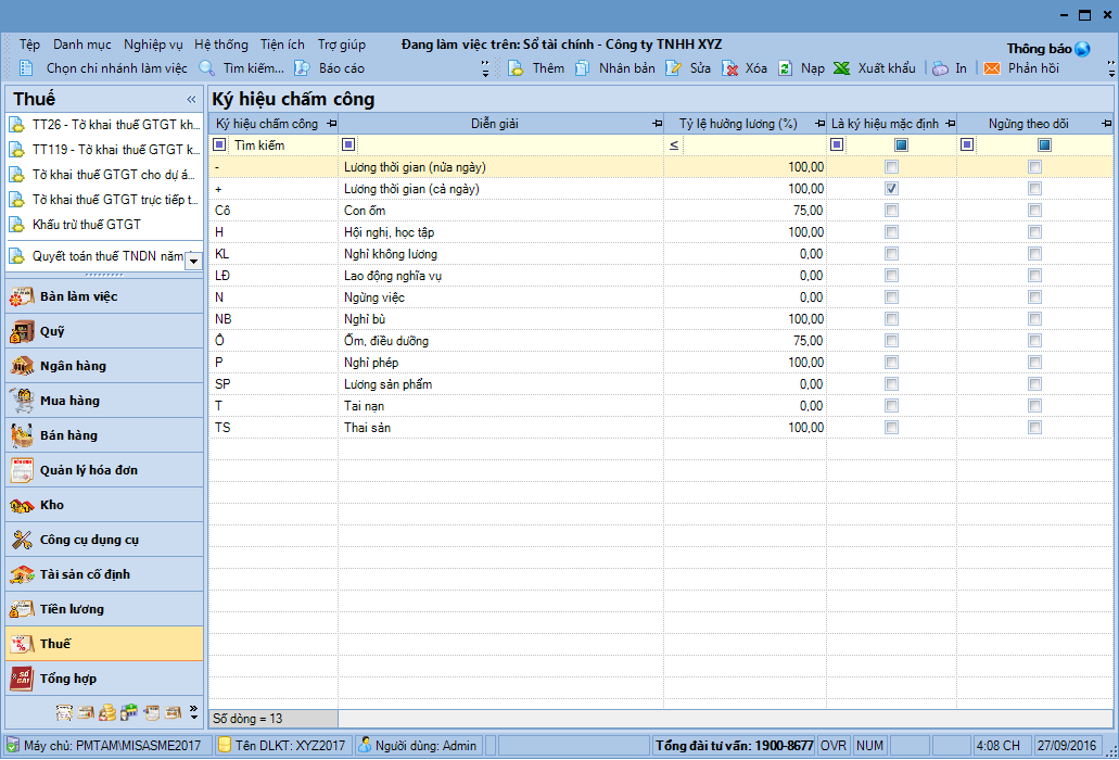 - Khai báo ký hiệu chấm công