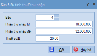 Bước 1. Tại màn hình danh sách biểu tính thuế thu nhập, chọn một biểu tính thuế sau đó chọn chức năng Sửa trên thanh công cụ.
