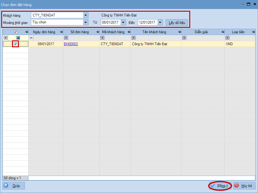 Bước 2. Thiết lập điều kiện để tìm kiếm đơn đặt hàng, sau đó nhấn Lấy dữ liệu.