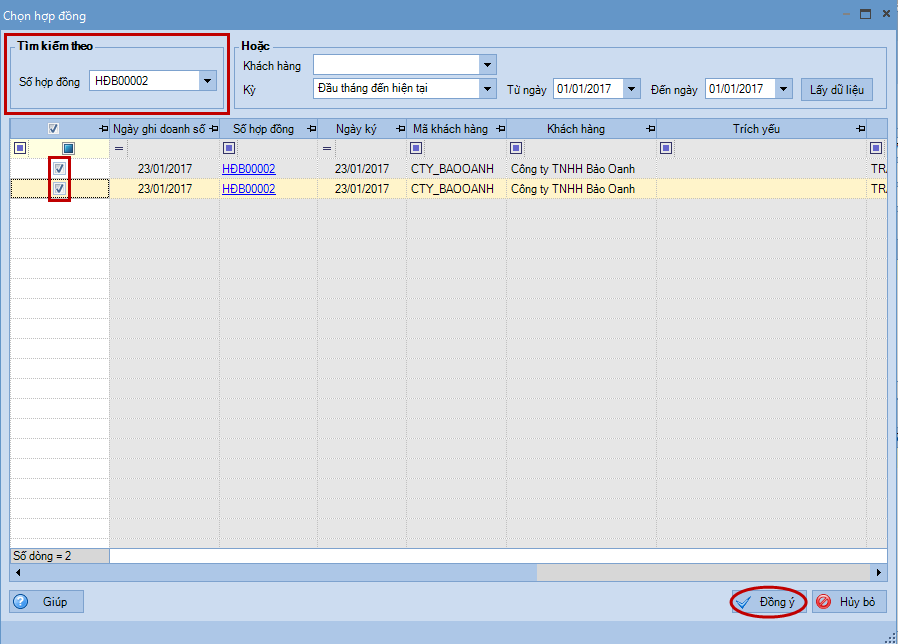 Bước 2: Thiết lập điều kiện để tìm kiếm hợp đồng bán:
