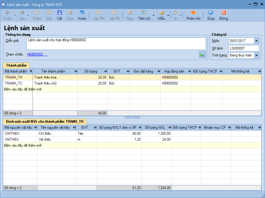 - Thao tác lập lệnh sản xuất từ hợp đồng bán