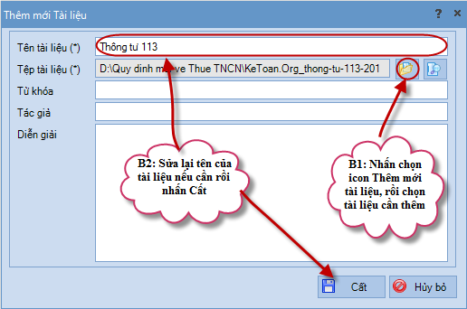 Bước 4: Nhấn Cất để hoàn tất việc thêm tài liệu.