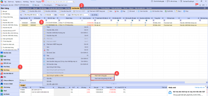 - Vào Bán hàng\ tab Xuất hóa đơn, nhấn chuột phải vào dòng Hóa đơn chiết khấu, chọn chức năng Lập chứng từ chứng từ nghiệp vụ khác