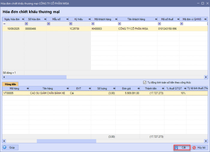 3. Chương trình sẽ tự động lấy các thông tin trên hóa đơn để lập Hóa đơn chiết khấu tương ứng.
