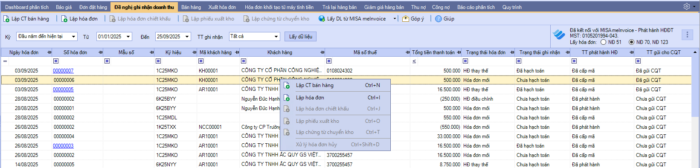 - Lập chứng từ bán hàng, lập hóa đơn, lập phiếu xuất kho cho các hóa đơn lấy về từ meInvoice.vn