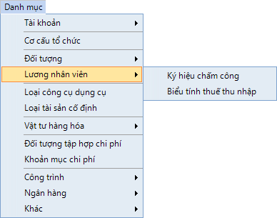 Nhóm danh mục Lương nhân viên cho phép kế toán: