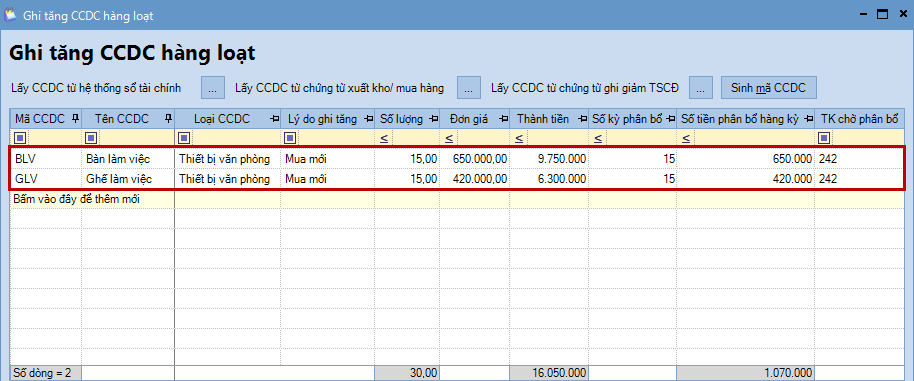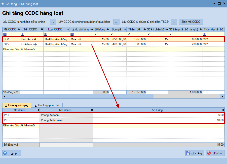 - Lưu ý khi thực hiện ghi tăng và phân bổ CCDC.