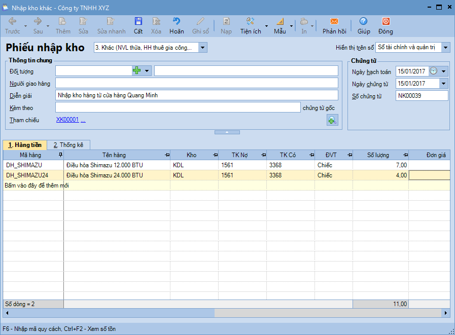 Bước 5: Khai báo các thông tin còn thiếu trên chứng từ nhập kho, sau đó nhấn Cất.