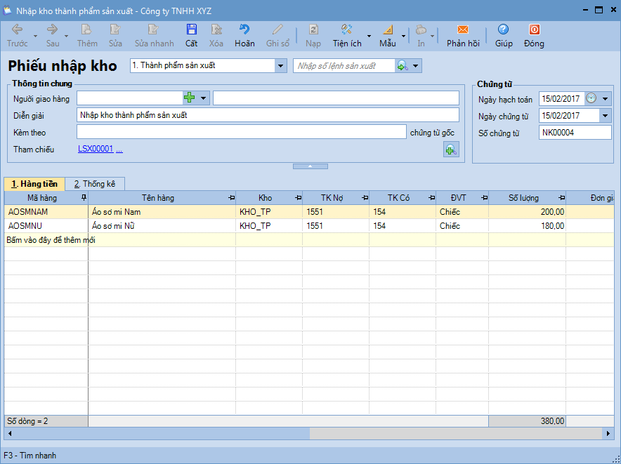 - Các bước thực hiện lập phiếu nhập kho thành phẩm