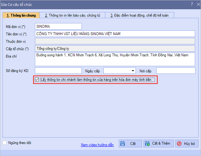 2.1. Bổ sung chức năng Lấy thông tin chi nhánh làm thông tin cửa hàng trên hóa đơn máy tính tiền