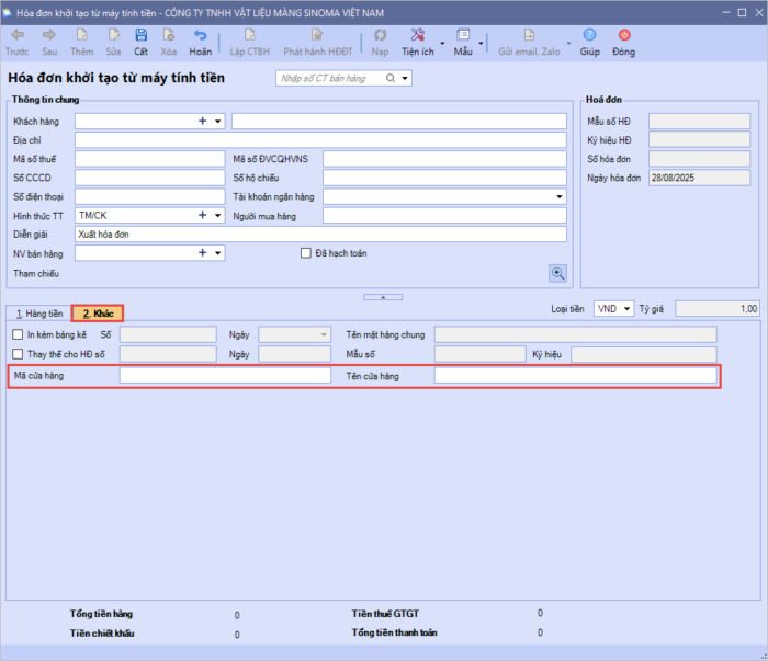 - Bổ sung chức năng lấy thông tin chi nhánh làm thông tin cửa hàng trên hóa đơn máy tính tiền.