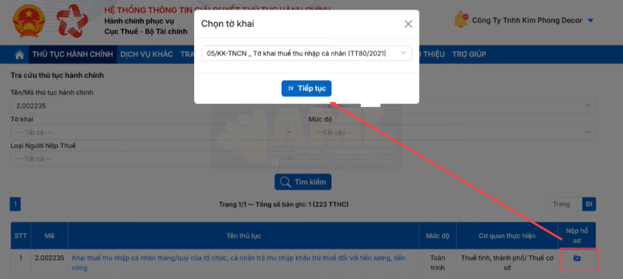 Lưu ý: Trường hợp sau khi xử lý theo cách trên vẫn báo lỗi thì thực hiện kê khai trực tuyến hoặc gửi mail sang thuế theo địa chỉ [email protected] hoặc liên hệ Điện thoại: (024) 39712555 hoặc (024) 37689679 – số máy lẻ 2180 để được hỗ trợ (Trên mail mô tả rõ các bước thực hiện ký trên DVC và đính kèm XML lỗi) 2.3 Lỗi Mẫu tờ khai đã được nâng cấp trên Hệ thống Thông tin giải quyết TTHC của cơ quan thuếNộp tờ khai báo lỗi: “Có lỗi trong quá trình xử lý tờ khai. Tờ khai phát sinh các lỗi sau:-Mẫu tờ khai đã được nâng cấp trên Hệ thống Thông tin giải quyết TTHC của cơ quan thuế. Người nộp thuế vui lòng thực hiện tại: https://dichvucong.gdt.gov.vn/. “ Giải pháp: Anh/chị thực hiện nộp tab THỦ TỤC HÀNH CHÍNH, cụ thể như sau: