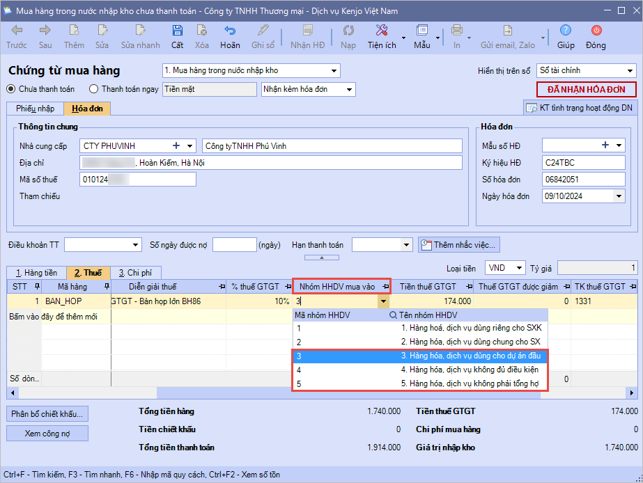 - Lưu ý về phân loại nhóm HHDV và thuế suất trên hóa đơn, chứng từ