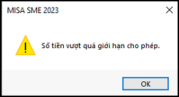 Mục đích: Hướng dẫn xử lý khi phần mềm cảnh báo số tiền trên chứng từ vượt quá giới hạn cho phép.