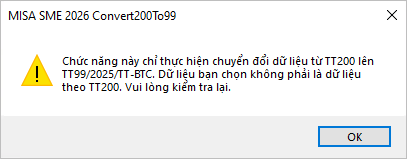 Lưu ý: MISA khuyến nghị quý khách hàng tiếp tục nhập chứng từ phát sinh năm 2026 và hoàn thiện báo cáo tài chính năm 2025 trên dữ liệu hiện tại trước khi cập nhật dữ liệu từ TT200 lên TT99.