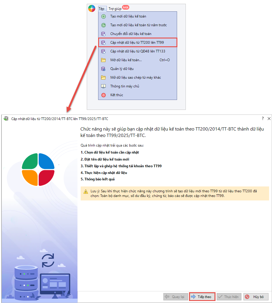Nội dung bài viết gồm: Hướng dẫn cập nhật dữ liệu từ Thông tư 200/2014/TT-BTC lên Thông tư 99/2025/TT-BTC.