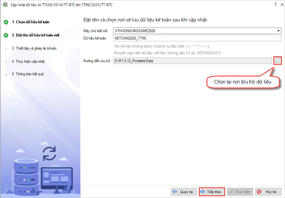 Bước 1: Chọn dữ liệu kế toán cần cập nhật