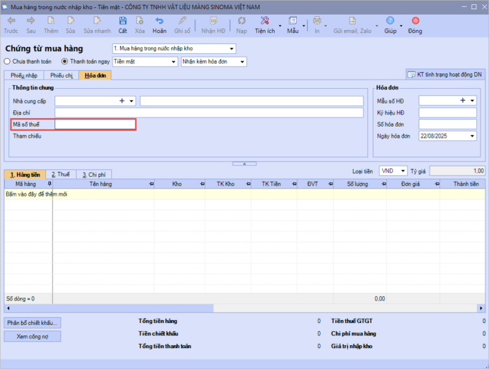 • Người dùng có thể nhập căn cước công dân vào cột Mã số thuế trên Danh mục\ Khách hàng\Nhà cung cấp.