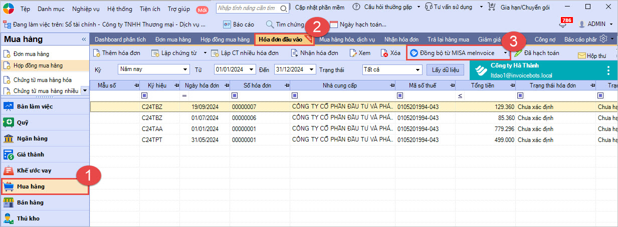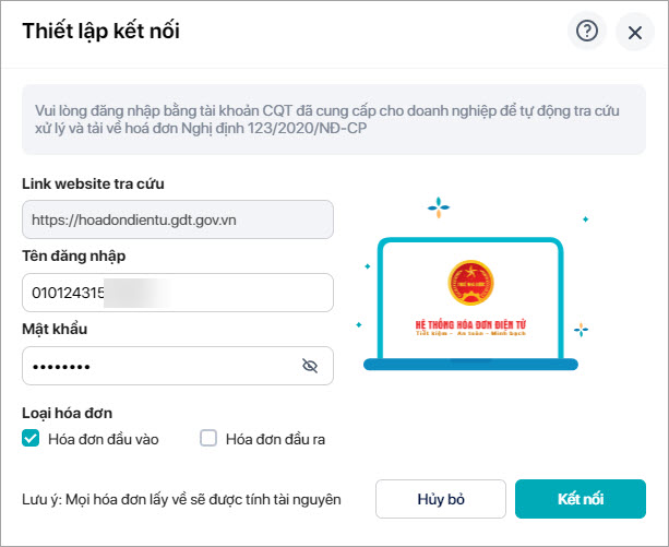 Đồng bộ hóa đơn đầu vào từ hóa đơn điện tử của Cơ quan thuế để hạch toán.