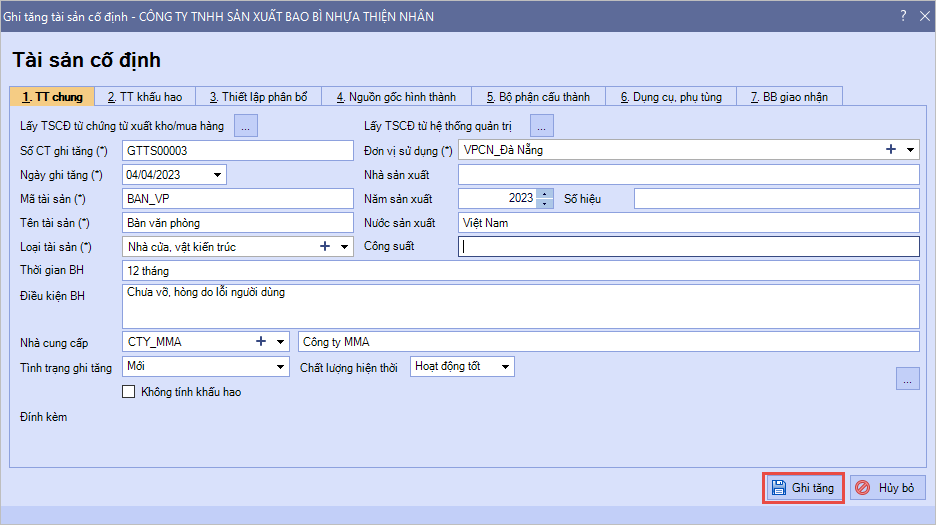 - Bước 7: Nhấn Ghi tăng.