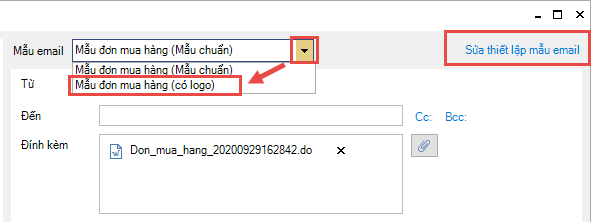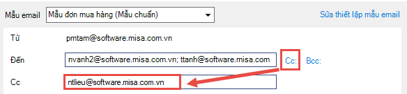 Bước 2: Nếu đã khai báo Email liên hệ trên danh mục Khách hàng, Nhà cung cấp hoặc Nhân viên, phần mềm sẽ tự động điền email người nhận. Bước 3: Nếu chưa khai báo email, cần tự nhập vào ô Đến.
