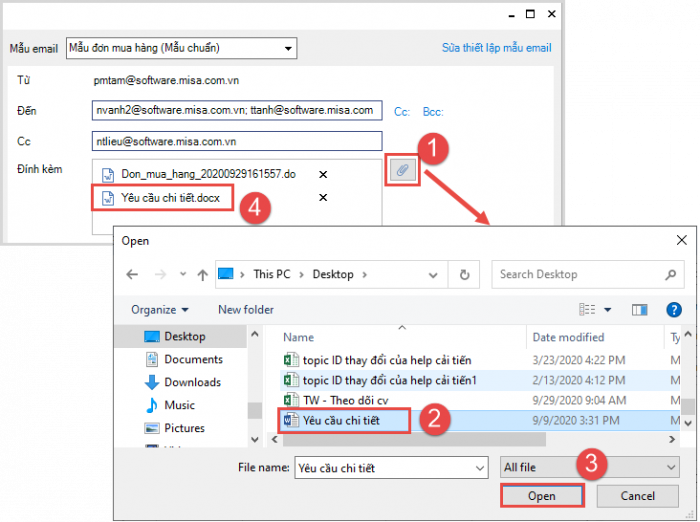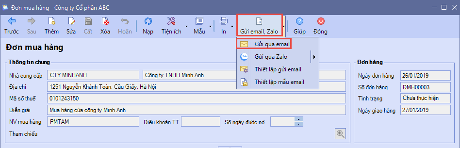 Mục đích: Hướng dẫn kế toán gửi chứng từ, báo cáo, hợp đồng, đối chiếu công nợ… qua email trực tiếp trên phần mềm mà không cần xuất file hoặc in ấn.