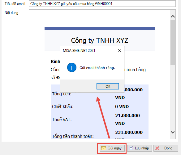 Bước 5: Nhấn Gửi ngay. Lưu ý: Nếu chưa muốn gửi ngay, nhấn Lưu nháp để lưu email. Sau đó vào Xem nhật ký gửi email để gửi lại.