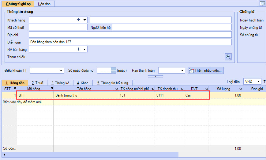 Do mặt hàng khi thêm trong danh mục Vật tư hàng hóa, bạn không khai báo thêm Đơn vị tính, mà tự điền tay trực tiếp trên chứng từ