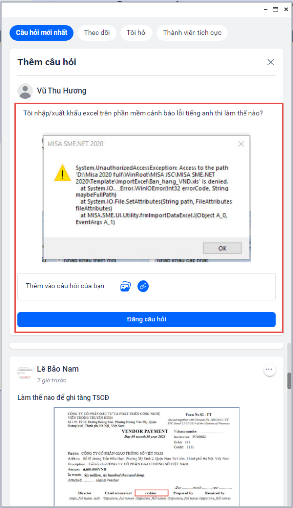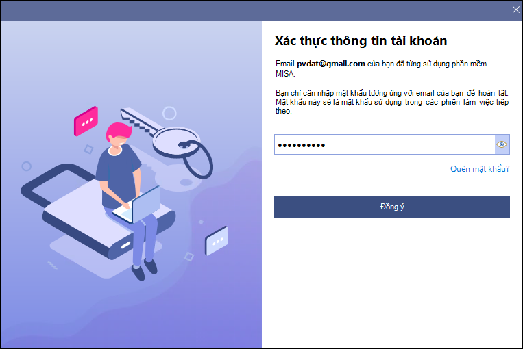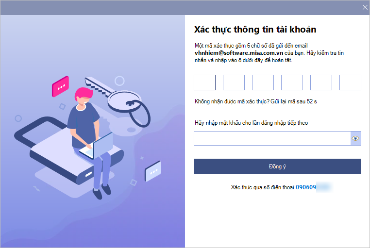 Lưu ý: Chương trình lưu xác thực thông tin tài khoản để sử dụng chức năng này theo máy tính và user đăng nhập. (User đã xác thực ở máy tính này, thực hiện chức năng hỏi cộng đồng MISA ở máy tính khác thì vẫn cần xác thực thông tin tài khoản như lần đầu).