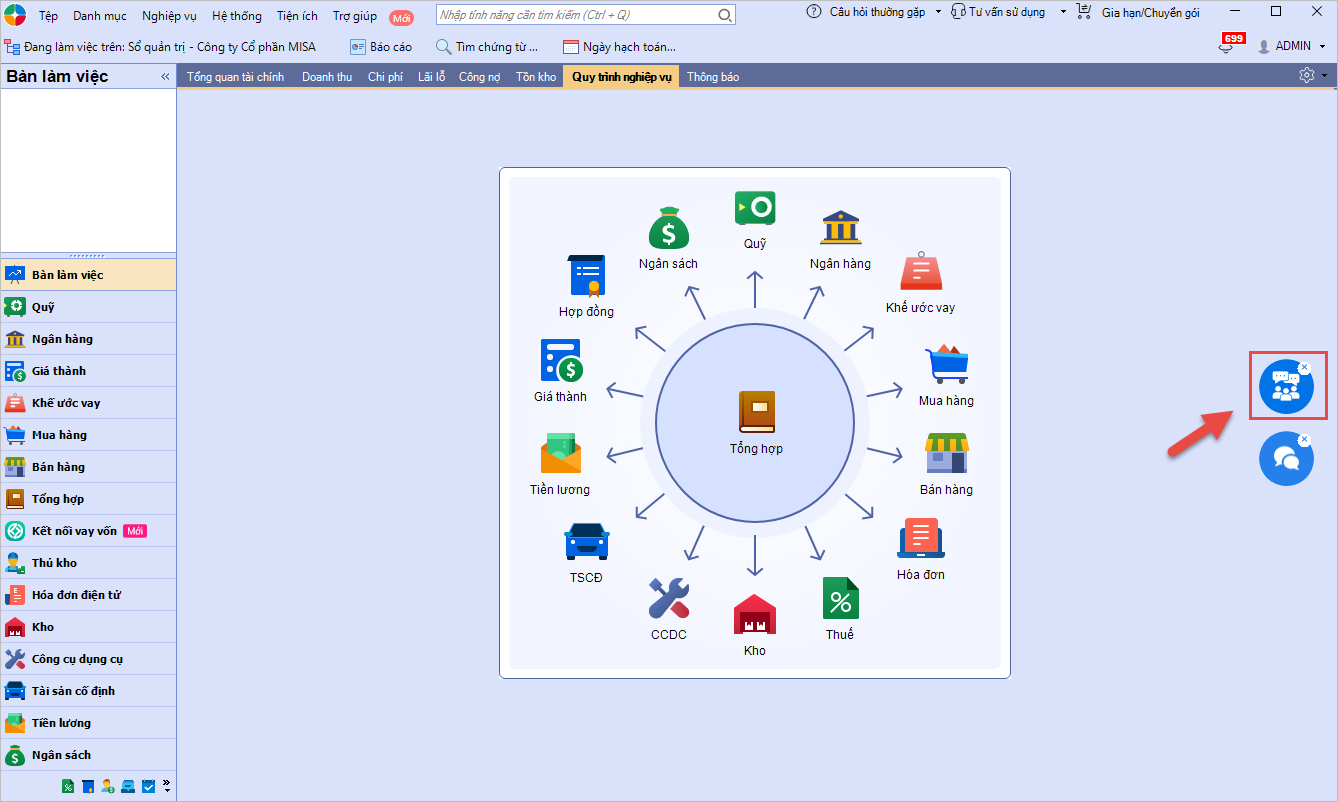 - Nhấn vào biểu tượng Hỏi cộng đồng MISA ở góc giao diện phần mềm.