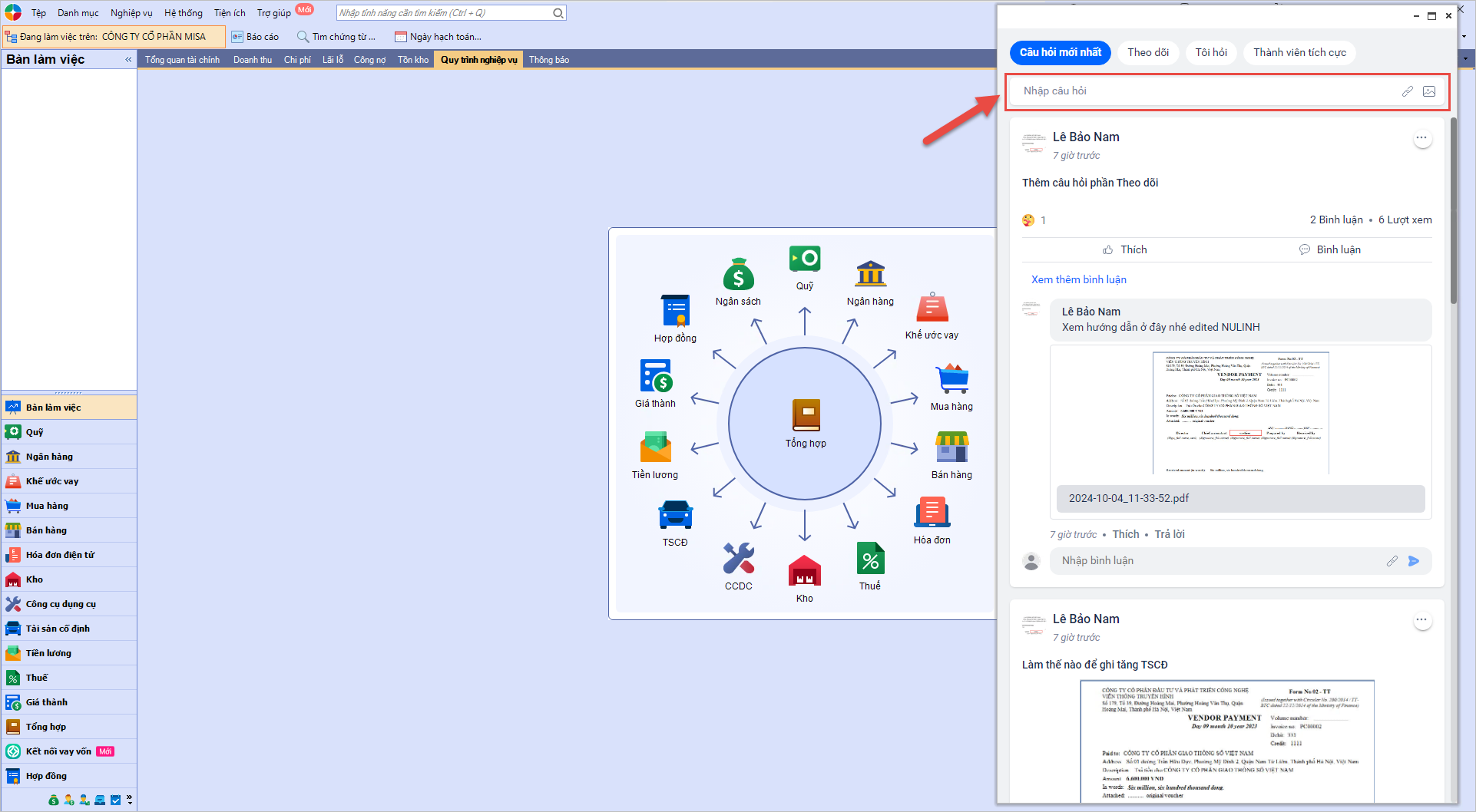 Tất cả các cuộc trao đổi diễn ra trực tiếp trên màn hình làm việc, cho phép người dùng tiếp tục công việc kế toán mà không bị gián đoạn.