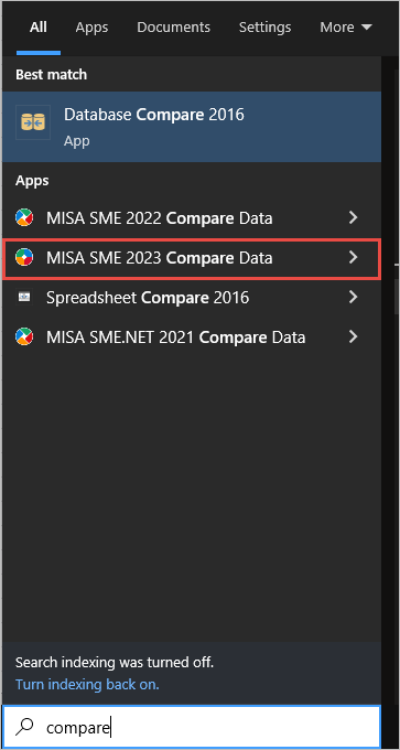 Bước 1: Với Win 10, nhấn vào biểu tượng kính lúp ở góc trái màn hình, tìm kiếm công cụ MISA SME Compare Data.