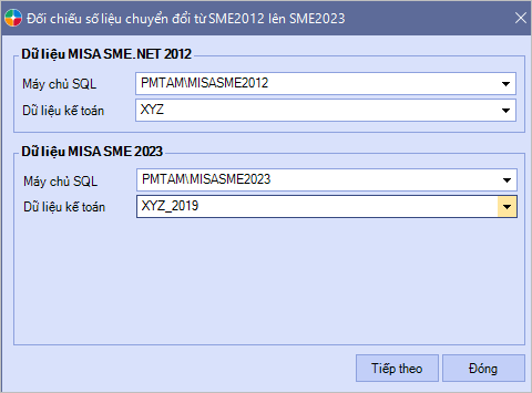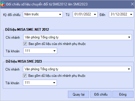 • Kiểm tra, đối chiếu số liệu giữa MISA SME 2012 và MISA SME 2023 bằng các báo cáo và công cụ so sánh