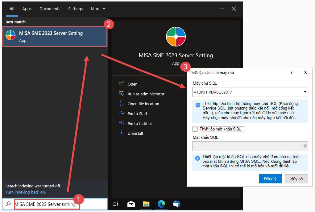 Cách 1: Dùng Tool MISA SME 2023 Server SettingBước 1: Trên máy chủ, tìm kiếm và mở tool MISA SME 2023 Server Setting.