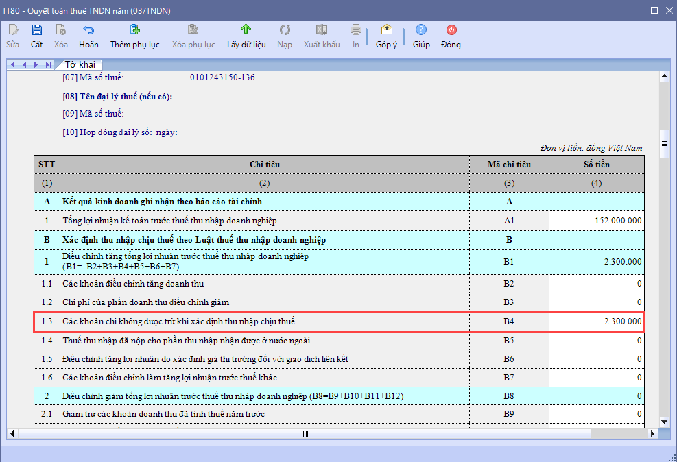 - Cách lấy số liệu chỉ tiêu B4 – Chi phí không được trừ