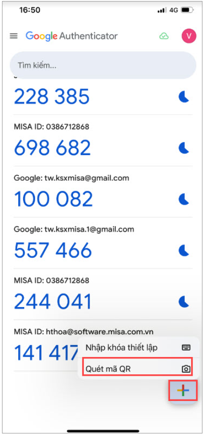 • Mở ứng dụng Google Authenticator, nhấn biểu tượng dấu +.