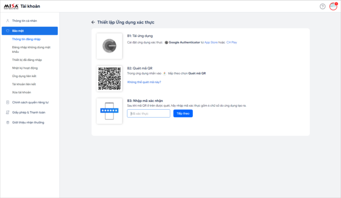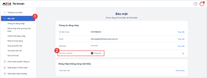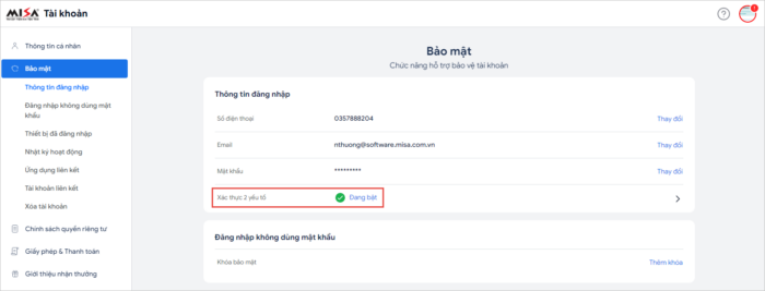 2.1. Bật xác thực 2 yếu tố thông qua MISA ID