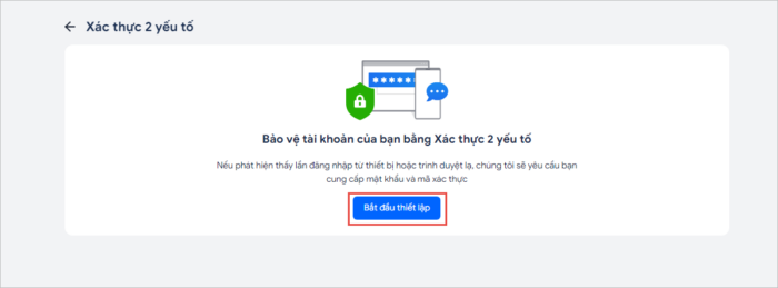 • Việc thiết lập xác minh 2 lớp là bắt buộc để nâng cao tính bảo mật dữ liệu, nếu chưa thiết lập sẽ có cảnh báo và bỏ qua được 10 lần sau đó anh/chị phải thiết lập xác mình 2 lớp để tiếp tục đăng nhập. Vì vậy anh/chị vui lòng thiết lập bảo mật 2 lớp càng sớm càng tốt.