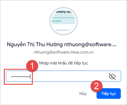 Bước 4: Nhập mật khẩu sau đó nhấn Tiếp tục: