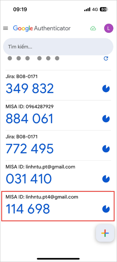 Bước 1: Mở ứng dụng Google Authenticator trên điện thoại để lấy mã xác nhận: