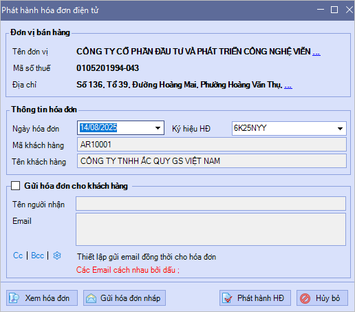 Người dùng cần thực hiện phát hành hóa đơn điện tử cho chứng từ này để cấp số hóa đơn và sau đó ghi sổ lại: