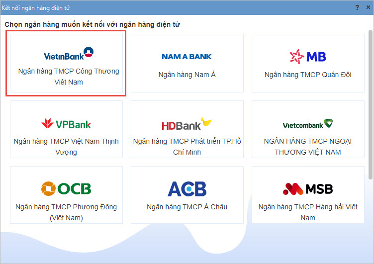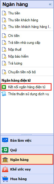Bước 1.Vào phân hệ Ngân hàng/ chọn Kết nối ngân hàng điện tử.